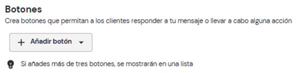Al final de la plantilla, contamos con la opción de añadir botones interactivos. Hay tres tipos de botones disponibles: