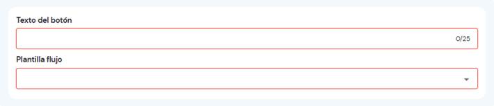 Por defecto estará la opción para definir el Texto del botón del flujo y seleccionar la Plantilla flujo que se ejecutará al pulsarlo.
