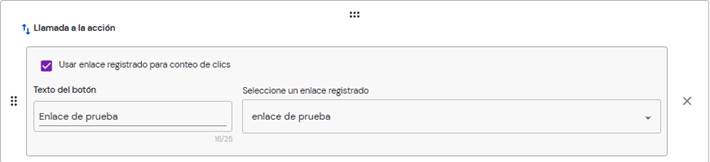 • Si se marca la casilla “Usar enlace registrado para conteo de clics” puedes llevar un control de interacciones de los url registrados en el apartado de “Registro de enlaces”.