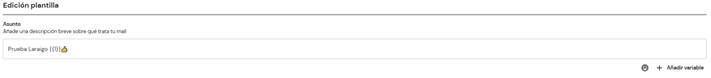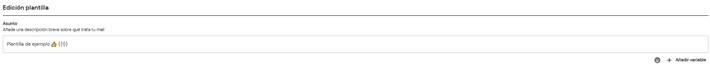 En el asunto podemos añadir un encabezado a la plantilla, utilizar emojis y variables.