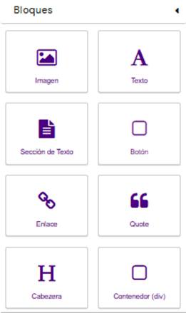 Incluye bloques prediseñados como texto, imágenes, botones, separadores, etc., que puedes insertar y personalizar fácilmente.
