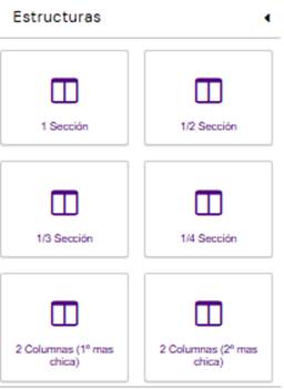 El editor también cuenta con tres secciones desplegables que permiten personalizar la estructura de la plantilla: