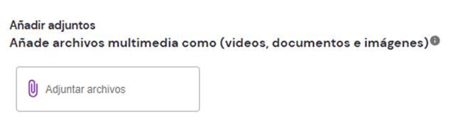 Adjuntar archivos: En esta sección puedes añadir archivos multimedia como imágenes, documentos o videos que serán enviados junto al mensaje.