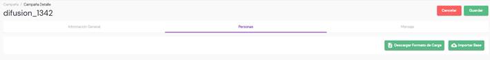 En la sección personas donde se tendrá que subir el archivo en formato Excel para la creación de la campaña.