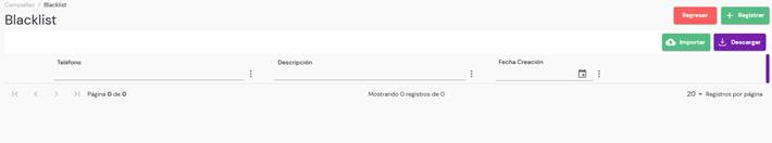 • Importar: Permite cargar una lista de números telefónicos y agregarlos a la blacklist.