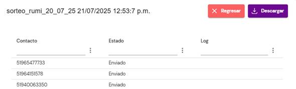 Nos permite visualizar todos los envíos de campaña que se ha efectuado, también nos muestra si el envío fue de manera satisfactoria o no.