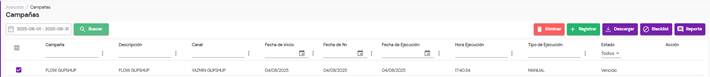 • Eliminar: Elimina las campañas seleccionadas en la lista.