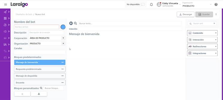 Con esto, hemos realizado un recorrido general por el diseñador de bots de Laraigo. En un próximo video, podremos revisar un caso práctico de creación de un flujo básico donde aplicaremos todos estos conceptos.
