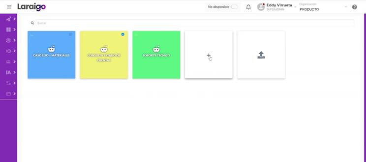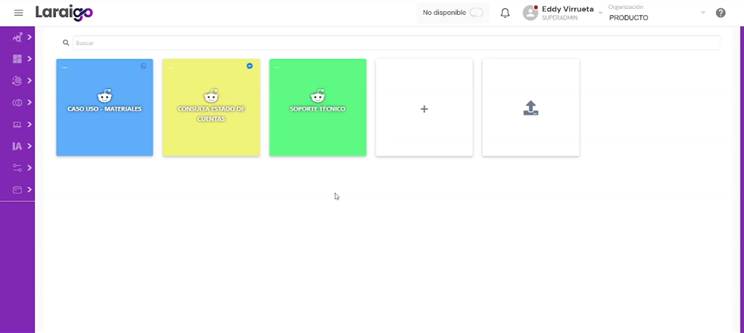 El diseñador de bots es una herramienta que permite crear flujos conversacionales sin necesidad de programación, gracias a sus capacidades no code. Con esta funcionalidad, es posible diseñar bots personalizados adaptados a diferentes necesidades o procesos de la organización. Comenzamos iniciando sesión en Laraigo con un perfil de administrador del sistema.