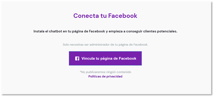 Haz clic en el botón Vincula tu página de Facebook para iniciar el proceso de integración.