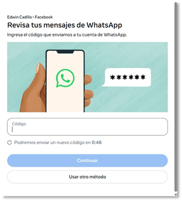 Es posible que recibas un mensaje en tu WhatsApp como parte del proceso de seguridad de Facebook para autenticar tu cuenta.