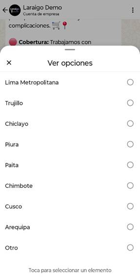 - El bot solicita al cliente indicar si el pedido o cotización es para Lima o Provincia.